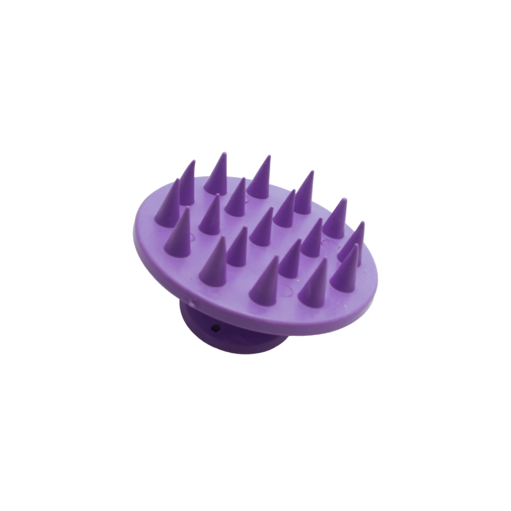 Escova massageadora com cerdas de silicone, ideal para higienização suave do couro cabeludo.