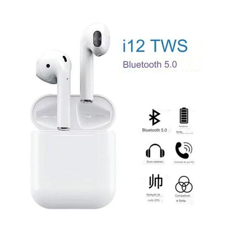 O Fone Bluetooth I12 TWS oferece uma experiência totalmente sem fios, com som estéreo de alta qualidade e comandos por toque, ideal para quem busca praticidade, mobilidade e estilo.