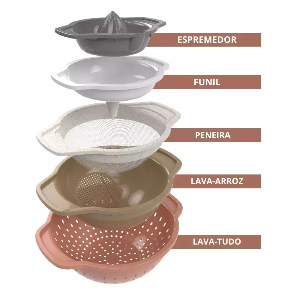 Produzidos em material plástico resistente, os utensílios são leves, duráveis e seguros para uso com panelas antiaderentes. O design moderno e o suporte compacto tornam esse jogo uma excelente opção para o dia a dia, oferecendo agilidade e eficiência nas tarefas culinárias.